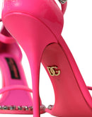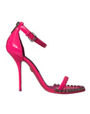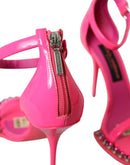 Dolce & Gabbana Pink Leather Crystal Heels Sandals Shoes