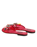 Dolce & Gabbana Red Embellished Flats Slip On Sandals Shoes
