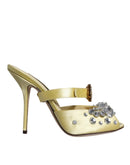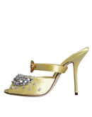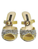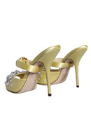 Dolce & Gabbana Yellow Mary Janes Satin Crystal Sandals Shoes