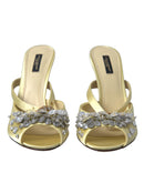Dolce & Gabbana Yellow Satin Crystal Mary Janes Sandals