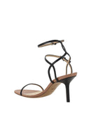 Francesco Russo Black Calf Leather Bos Taurus Stiletto Heel Sandals
