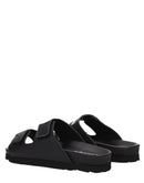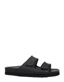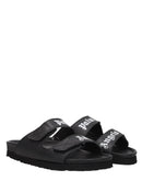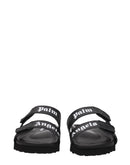 The product with MPN PWIH010LEA0011001 and code F76760 leather in black is a sandals designed by Palm Angels. It has features like front logo.