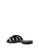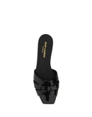 Calfskin Tribute Sandals by Saint Laurent, square toe, flat sole, woven on front, logoed insole.
