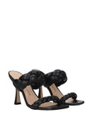 Stuart Weitzman Black Leather Stiletto Heel Sandals
