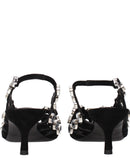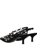 The product with MPN SH00844LBT007SA100 and code F84539 suede in black is a sandals designed by The Attico. It has features like studs, front logo.
