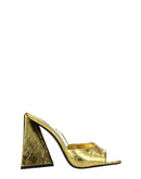 The product with MPN S000L070022 and code F79193 leather in gold is a sandals designed by The Attico. It has features like vintage effect.