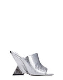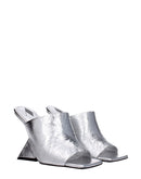 The product with MPN S634L070002 and code F79194 leather in silver is a sandals designed by The Attico. It has features like vintage effect.