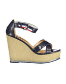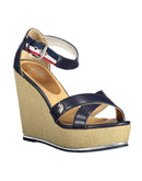 sandal, ankle strap, 12 cm wedge, contrasting details, logo