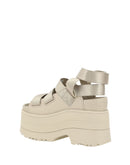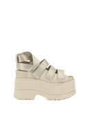 Ugg’s Goldenrise Sandals are the perfect blend of comfort and casual style. The round toe and rubber platform sole offer comfort and support, while adjustable Velcro straps at the ankle and instep ensure a customized fit. The embossed logo on the back and inside adds a distinctive and recognizable detail.