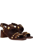 The product with MPN S0LQ7KIEKG8 and code F84685 suede in brown is a sandals designed by Valentino Garavani. It has features like front logo, studs.