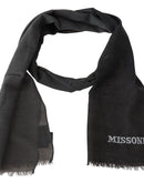 Missoni Gray Wool Unisex Neck Wrap Shawl Fringes Logo Scarf