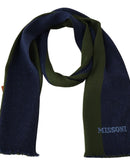 Missoni Green Striped Wool Unisex Neck Wrap Shawl Blue