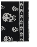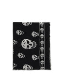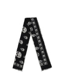 The Skull Foulard by McQueen is crafted from a silk and modal blend in black and dark grey, featuring an all-over Skull motif. The fringed edges are accented with Skull details and the McQueen logo, creating a distinctive, contemporary accessory.