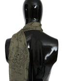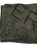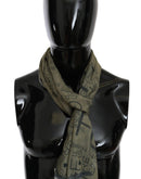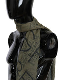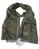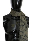 GF Ferre Green Wool Viscose Foulard Patterned Branded Scarf