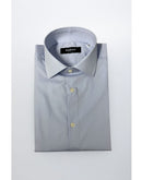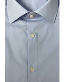 Elevate your wardrobe with the impeccable craftsmanship of Baldinini Trend – sophistication meets style in this Slim Fit Shirt. It boasts a pristine French collar, and its sleek front button closure mirrors the elegance on the cuffs. Crafted from the finest cotton, its light blue hue is a testament to timeless fashion. Perfect for a man who appreciates the finer details in his ensemble.