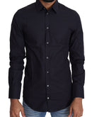 Dolce & Gabbana Navy Blue Cotton Formal Dress Shirt