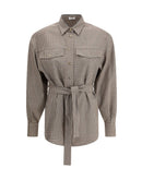 Brunello Cucinelli Brown Fleece Wool Pattern Shirt