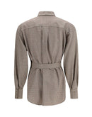 The checked virgin wool Shirt by Brunello Cucinelli embodies a refined balance of tradition and modern femininity. The country-inspired check pattern evokes a timeless charm, while the soft fit with voluminous sleeves and dropped shoulders lends an elegant reinterpretation of classic menswear. The removable belt gently defines the waist, and the monile embroidery on the collar adds a delicate sparkle — a signature element that enhances the shirt with the distinctive elegance of the Brunello Cucinelli aesthetic.