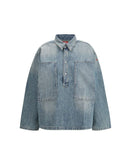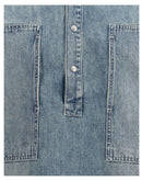 The Henley Top in De-Priss by Diesel reimagines the utility aesthetic with a modern and distinctive touch. Crafted from 100% cotton denim with regenerative fibers, it features a light-blue wash and a clean finish that highlights its contemporary appeal. The boxy silhouette is defined by a polo-inspired Henley collar with branded metal snap buttons and large chest patch pockets with side openings. A small red-thread embroidered Oval D logo on the sleeve adds an iconic detail. A versatile piece that merges urban functionality with workwear spirit, ideal for a casual yet refined look.
