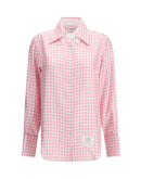 The checked silk Shirt by Thom Browne offers a refined take on a timeless classic. Defined by a light pink gingham pattern, it features a point collar, button fastening, and long sleeves with buttoned cuffs. A wardrobe essential that merges sartorial precision with understated charm, perfect for effortless sophistication.