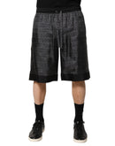 Dolce & Gabbana Gray Black Silk DG Logo Men Bermuda Shorts