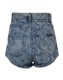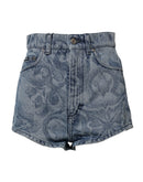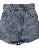 Dolce & Gabbana Blue Floral Print Denim Cotton Hot Pants Shorts
