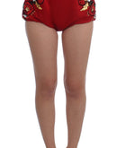 Dolce & Gabbana Red Silk Crystal Roses Shorts