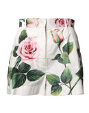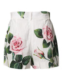 Dolce & Gabbana White Floral Print High Waist Hotpants Short