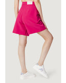 The Hinnominate women’s bermuda shorts model HNW815 are the perfect choice for those seeking a fresh and contemporary look. Made from 100% polyester, these solid-color shorts feature a slightly loose fit enhanced by elegant front pleats that add movement and sophistication. The high waist with zip and button closure ensures a comfortable and flattering fit, while practical side pockets provide both functionality and style. Ideal for the warm season, they pair easily with both casual and more refined outfits, always offering comfort and on-trend appeal.