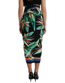 Dolce & Gabbana Black Strelitzia High Waist Wrap Midi Skirt