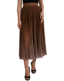 Dolce & Gabbana Brown Polyester Pleated High Waist Midi Skirt