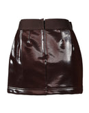 mini skirt is crafted from soft dark brown cotton. The high-waist design offers a flattering fit, making it a versatile piece that pairs effortlessly with both casual and elegant looks.