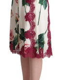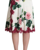 Dolce & Gabbana White Rose Print High Waist Midi A-line Skirt
