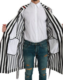 Dolce & Gabbana Black Coat Nightgown White Cotton Robe