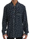 Dolce & Gabbana Blue Skull Print Silk Top Sleepwear Shirt