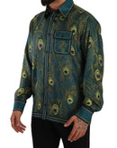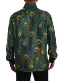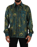 Dolce & Gabbana Peacock Feather Print Silk Pajama Mens Shirt