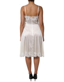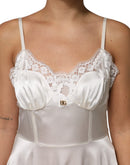 Dolce & Gabbana White Lace DG Logo Silk Dress Sleepwear