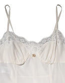 Dolce & Gabbana White Lace Gold DG Logo Silk Dress Sleepwear