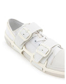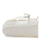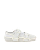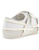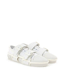 Burberry White Canvas Sneaker with External Rubber Structure. Front fastening with tone-on-tone laces, round toe with white shiny rubber detail, engraved logo on the back. The shoe is covered with a white rubber/plastic structure, with two straps with buckles that top it. Composition: 100% Cotton-Internal Sku:24GIU86