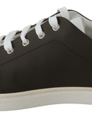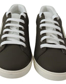 Dolce & Gabbana White Green Leather Low Top Sneakers Shoes