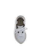The leather Sneakers with shiny details by Brunello Cucinelli combine artisanal elegance and luminous details. Crafted from smooth leather, they feature flat cotton laces and a fabric lining for comfort and breathability. The removable insole and lightweight microsole offer a comfortable fit, with a 2 cm heel at the highest point. The distinctive touch is provided by the shiny jewel decoration, which adds sparkle and refinement to the minimalist design.