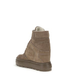 Casadei’s Wedge Sneakers combine sporty style and femininity in a refined design. Made of caribou-colored suede calfskin, they feature a lace-up closure and a rubber lugged bottom that ensures grip and durability. The hidden internal wedge provides height, stability and comfort, making them perfect for everyday wear without sacrificing elegance.