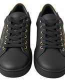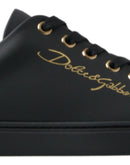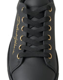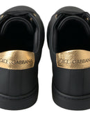 Dolce & Gabbana Black Gold Leather Classic Sneakers Shoes