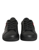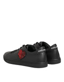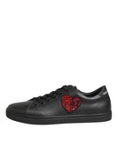 Dolce & Gabbana Black Leather Crystal Heart Sneakers Shoes