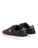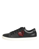 Dolce & Gabbana Black White Leather Crystal Heart Sneakers Shoes