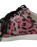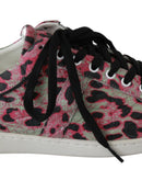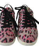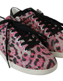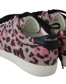 Dolce & Gabbana Pink Leopard Print Training Leather Flat Sneakers