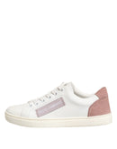 Dolce & Gabbana White Pink Leather Low Top Sneakers Shoes