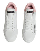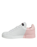 Dolce & Gabbana White Pink Portofino Low Top Sneakers Shoes