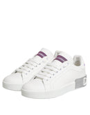 Dolce & Gabbana White Purple Leather Low Top Sneakers Shoes