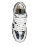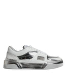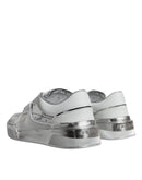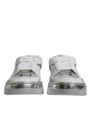 Dolce & Gabbana White Silver Leather Low Top Sneakers Shoes